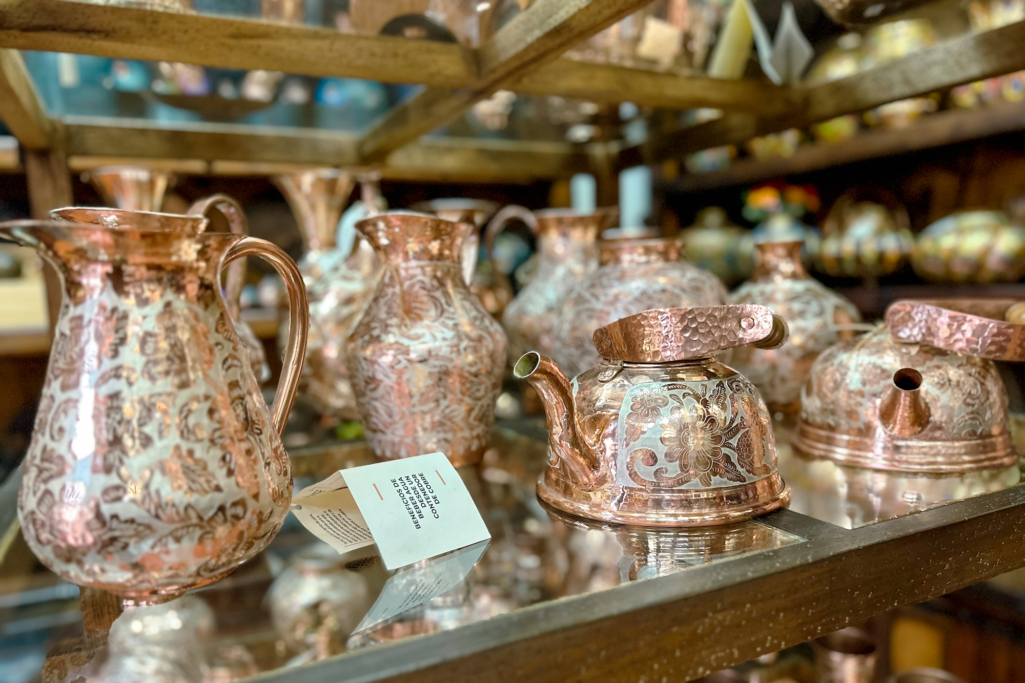 What we loved: The scenic drive through the mountains and pine forests and into the colonial ‘Pueblo Magico’. Peeking into a seemingly endless number of shops. Discovering unique and beautiful copper creations. Sampling the Tarascan soup (a local specialty) at the new and beautiful Olivo Restaurante. Buying unique gifts to bring back to friends and family (and maybe a couple for us). Finding beautiful leather dog collars, which we’ve been searching for since arriving in Mexico. Admiring copper details on buildings throughout the town.